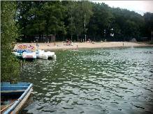 Der Eyllersee ist ein Waldfreibad mit 39.500 qm Wasserfläche. Sehr schön für Familien mit Kindern. Dort wird alles geboten um keine Langeweile aufkommen zu lassen. Sandstrand, Kinderspielplatz, Bolzplatz, Bootsverleih, Imbiss, Grillplatz, Beachvolleyplatz, Kiosk, Badeinsel, etc. Der Tauchbereich wurde optisch abgegrenzt. Der Taucheinstieg ist separat. Auf einer grossen Plattform kann man sich in Ruhe anrödeln. Über eine Treppe geht es bequem ins Wasser. Eine Voranmeldung ist unter der Woche nicht nötig. Nach Logbüchern, Brevetierung und Tauchgangsanzahl wird nicht gefragt. Bei Bedarf wird das Equipment gestellt. Bei einem knappen Briefing erfuhren wir von einer momentan schlechten Sicht. Das war mehr als untertrieben. Oberhalb der Sprungschicht betrug sie 0,5m, die Temperatur 24°C. Unterhalb, bei 5-7m, steigerte sich die Sicht auf 2m. Die Wassertemperatur fiel auf 8-12°C, ist halt ein Grundwassersee. Wir begannen unseren Tauchgang rechts herum am Ufer und begegneten unserem ersten Plastikfisch. Nach ungefähr 10 Minuten tauchten wir fast gegen eine Felsformation, die urplötzlich vor uns auftauchte. Die nahmen und nahmen keine Ende. Also entschlossen wir uns es mittig weiter zu probieren und nahmen Kurs auf das Wrack. Es handelt sich um eine ca. 8m lange Motorjacht, in der ein Helmtaucher wacht. Erschrecken war nicht drin, denn wir wussten schon vorher, das er dort sitzt. Dank der schlechten Sicht beschlossen wir den Tauchgang zu beenden. Navigieren ist dort eine echte Herausforderung. Die Hinweise, die zum Ausstieg führen fanden wir nicht. Dafür rammten wir fast ein Boot, das wie verloren im Grund steckte. Wir werden diesen See noch einmal im nächsten Jahr betauchen, bevor die Badegäste dort einstürmen. Dann wird die Sicht um etliches besser sein.
