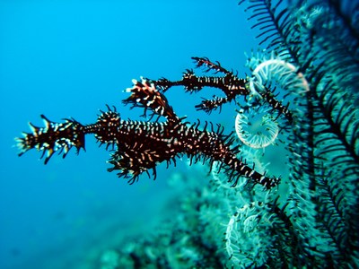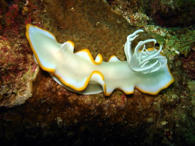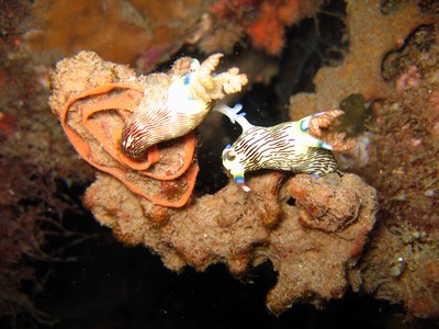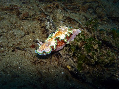 Wir buchten über Orca die Society Dive Basis in Dauin. Es ist eine sauber geführte Basis unter Schweizer Leitung. Das einchecken war freundlich, aber unter aller Sau. Man füllte einen Haftungsausschluß aus, ein Basisbriefing fand nicht statt. Jegliche Brevetierungen und die TU, wurden nicht kontrolliert, ein Checktauchgang fand nicht statt. So was haben wir noch nie erlebt. Die Tauchbasis war überbucht. Wir bekamen eine Kiste, die wir dann unter die Bank stellen konnten, über die andere Taucher ihre Sachen fachgerecht aufbewahren konnten. Auch unsere Jackets und Anzüge lagen dort, da alle Bügel belegt waren. Ständig tropfte das Wasser anderer Ausrüstungen auf die unsere. Die DTG’s waren mit einem festen INT-Anschluß versehen. Einen Adapter hatten wir nicht dabei. Mit Mühe und Not wurden uns zwei für eine tägl. Leihgebühr zur Verfügung gestellt. Um 17.00 Uhr wurden die Listen herausgehängt, wo man sich für die Bootstouren des nächsten Tages eintragen konnte. Kam man zu spät waren die Listen voll und man konnte dann nur noch am Hausriff tauchen. 10 Tage None Limit tauchen mit dem Boot hatten wir gebucht! Die Nebenkosten waren enorm. Für jeden Tauchgang wurden Umweltsteuern erhoben, wonach sich die Höhe der Gebühr nach dem Tauchgebiet richtete. Das mitführen einer Kamera kostete für jeden Tauchgang extra, selbst das Schnorcheln am Hausriff wurde in Rechnung gestellt Die Tauchplätze waren schön. Es gab dort viele künstliche Riffe aus zusammengestellten Autoreifen, die schon von vielen Fischen und Schnecken gut angenommen wurden. Der Untergrund war überwiegend sandig oder mit Seegras bewachsen. Die Halbtagestour mit 2 Tauchgängen nach Abo Island war da eine willkommene Abwechslung. Dort gab es Steilwände mit viel Strömung, wo wir auch Großfisch vor die Maske bekamen. Das Highlight was das Tauchen am Pier im Hafen von Dauin. Es war immer wieder ein Erlebnis dort die Unterwasserwelt zu erkunden. Kein Tauchgang glich dem anderen. Immer wieder gab es dort was neuen zu entdecken!